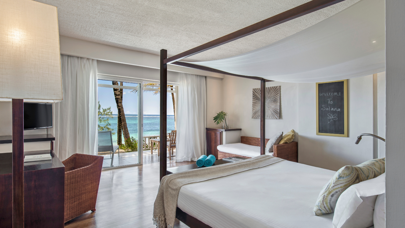 Solana Beach Mauritius offers 117 stylish rooms, thoughtfully designed in a contemporary island style that blends comfort with elegance. Each room features modern amenities and a private balcony or terrace with views of the ocean or the resort’s tropical surroundings, providing a relaxing space to unwind by the Mauritian coastline.